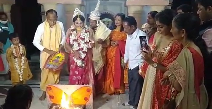 ফোকাস বেঙ্গল ডেস্ক,পূর্ব বর্ধমান: পাত্র পাত্রীর বিজ্ঞাপনে চোখ রাখলেই দেখতে পাওয়া যায় – অমুক পাত্র বা পাত্রীর জন্য অমুক বংশীয়, অমুক শ্রেণীর পাত্র বা পাত্রী চাই। বংশমর্যাদা, কৌলিন্যের গোঁড়ামি এখনও সমাজের বুকে আছে। সমাজ পরিবর্তন হয়েছে। চলছে প্রতিনিয়ত ভাঙাগড়ার খেলা। আর সেই খেলায় এবার সমাজের সেই পুরনো অচলায়তনের একটা ইঁট খসিয়ে চারহাত এক করে বিয়ে হল দেবাশীষ – পুজার।