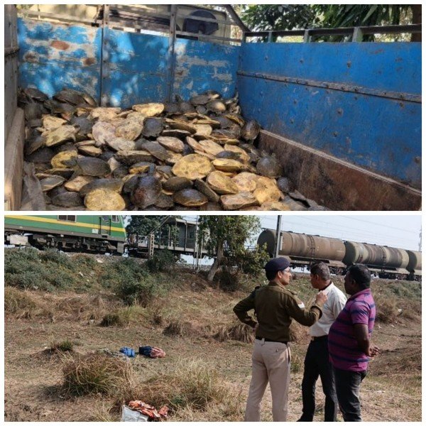 ফোকাস বেঙ্গল ডেস্ক,বর্ধমান: পাচারের উদ্দেশ্যে নিয়ে যাবার সময় পুলিশের নজরদারি এড়াতে বিপুল পরিমাণ কচ্ছপ (ইন্ডিয়ান সফট শেল টার্টল) সহ একটি পিক আপ ভ্যান ফেলে পালাল পাচারকারিরা। ঘটনাটি ঘটেছে পূর্ব বর্ধমানের দেওয়ানদীঘি থানার তালিত রেলগেট এলাকায়। পুলিশ ও আর পি এফ সূত্রে জানা গেছে, গাড়িটিতে প্রায় ৩০ টি ব্যাগে ৭৫২টি কচ্ছপ নিয়ে যাওয়া হচ্ছিল। এরমধ্যে দেওয়ানদীঘি থানার পুলিশ ২২টি ও পরে আর পি এফ আরো ৭টি ব্যাগ ভর্তি কচ্ছপ উদ্ধার করেছে। যদিও পাচারকারীরা সবাই পালিয়ে যাওয়ায় কাউকেই ধরতে পারেনি পুলিশ।