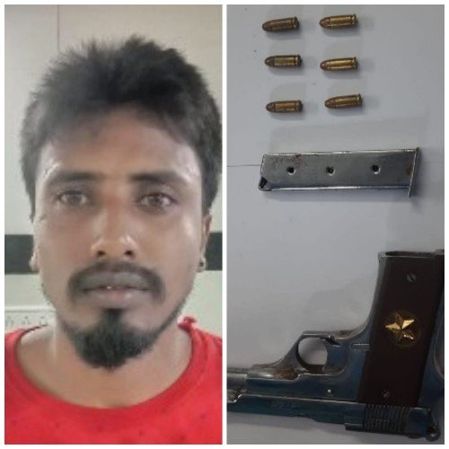 ফোকাস বেঙ্গল ডেস্ক,বর্ধমান: আগ্নেয়াস্ত্র বিক্রি করতে এসে বর্ধমান থানার পুলিশের হাতে ধরা পড়ল এক অস্ত্র কারবারি। ধৃতের নাম সুকান্ত মণ্ডল (২৬)। বাড়ি মেমারি থানার চোতখণ্ড গ্রামে। পুলিশ সূত্রে জানা গেছে, গোপন সূত্রে খবরের ভিত্তিতে শনিবার রাত ১১টা নাগাদ অভিযান চালিয়ে বর্ধমান শহরের পাঞ্জাবি পাড়া পেট্রোল পাম্প এলাকা থেকে আগ্নেয়াস্ত্র সহ গ্রেপ্তার করা হয় ওই যুবক কে। ধৃতের কাছ থেকে একটি ৭ এমএম পিস্তল ও ৬ রাউন্ড গুলি উদ্ধার করেছে পুলিশ। রবিবার ধৃতকে বর্ধমান আদালতে পেশ করে ১৪দিনের পুলিশি হেফাজতের আবেদন জানানো হয়। বিচারক ধৃতকে ১০ দিনের পুলিশি হেফাজতের নির্দেশ দিয়েছেন।