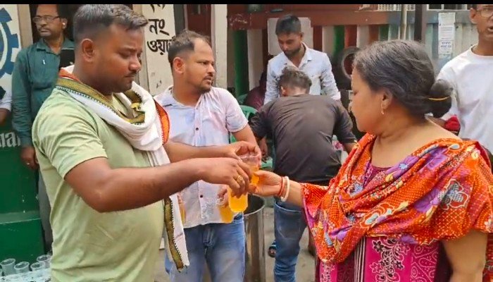 তীব্র গরমে স্বস্তি দিতে বর্ধমান মেডিকেলের সামনে ঠান্ডা পানীয় খাওয়ানোর উদ্যোগ অ্যাম্বুলেন্স এসোসিয়েশনের