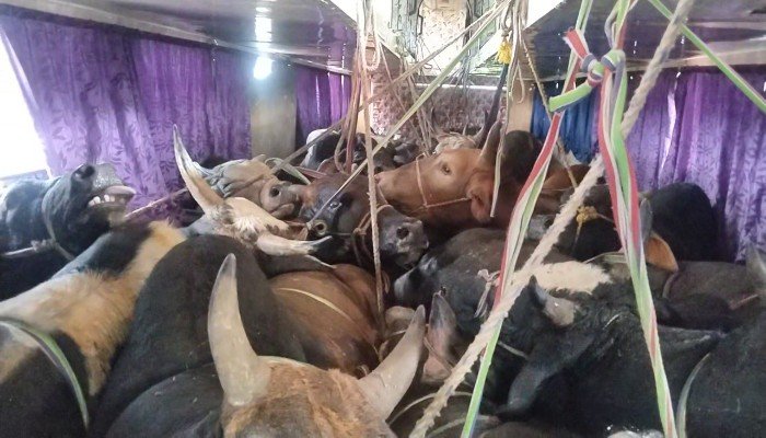 স্থানীয় এলাকাবাসী বাস টিকে দাঁড় করিয়ে ভিতরে উঁকি দিতেই ছানাবড়া চোখ। গোটা বাস ভর্তি গরু। যাতে না মাথা বেশি নড়াচড়া করতে পারে এমনকি বসতেও না পারে, তারজন্য গরুগুলোর মুখের সঙ্গে মোটা রসা দিয়ে বাসের ওপরে বাংকের সঙ্গে বেঁধে রাখা হয়েছে। কমপক্ষে ২২টি গরুকে এইভাবেই গাদাগাদি করে ঢুকিয়ে মেমারি শহরের ওপর দিয়ে বৃহস্পতিবার জিটি রোড ধরে নিয়ে যাওয়া হচ্ছিল।