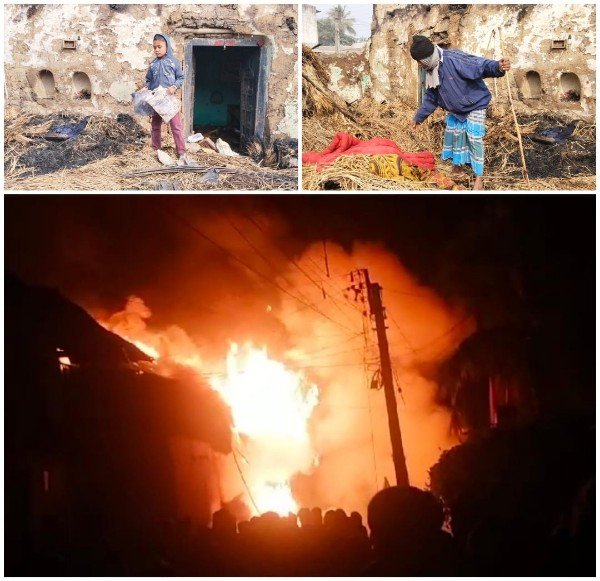 আগুনে ভস্মীভূত বসতবাড়ি, শীতের রাতে রাস্তায় অসহায় পরিবার, পাশে থাকার আশ্বাস বিডিওর