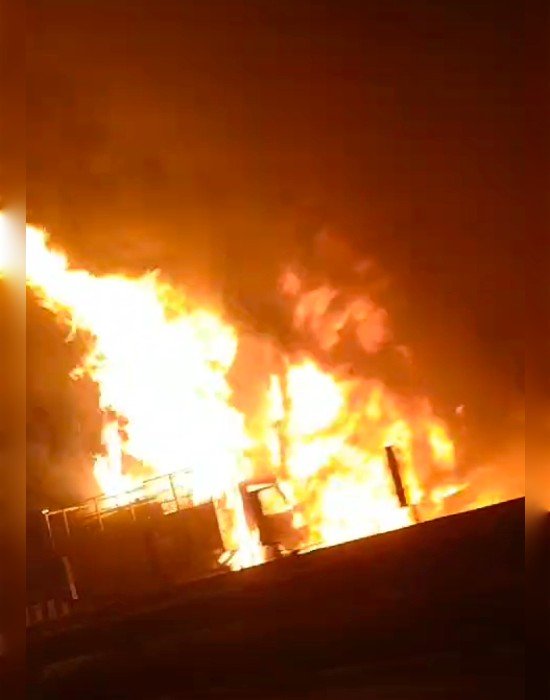 ফোকাস বেঙ্গল ডেস্ক, গলসি: গলসির মানিকবাজার এলাকায় ১৯নম্বর জাতীয় সড়কের উপর মাঝরাতে ঘটে গেলো ভয়াবহ দুর্ঘটনা। দুর্গাপুরের দিক থেকে বর্ধমানের দিকে আসার সময় একটি গ্যাস সিলিন্ডার বোঝাই ট্রাক একটি পণ্যবাহী ১৮চাকা ডাম্পারের পিছনে ধাক্কা মারলে ঘটনাস্থলেই ট্রাকটিতে আগুন লেগে যায়। দুর্ঘটনার পরই জাতীয় সড়ক দিয়ে যাতায়াতকারী সমস্ত যানবাহন দাঁড়িয়ে পরে। দাউ দাউ করে জ্বলতে থাকে ট্রাক।