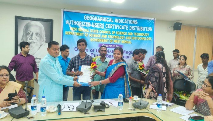 বৃহস্পতিবার বর্ধমান উন্নয়ণ পর্ষদের সভাকক্ষে একটি অনুষ্ঠানে জেলা থেকে ইতিমধ্যেই জি আই স্বীকৃতি পাওয়া বর্ধমানের সিতাভোগ-মিহিদানা ও আউসগ্রামের ডোকরা শিল্পীদের হাতে এই সার্টিফিকেট তুলে দেওয়া হয়। এদিন মোট ৩২ জনের হাতে এই সার্টিফিকেট তুলে দেওয়া হয়। এদিনের অনুষ্ঠানে ছিলেন রাজ্যের মন্ত্রী স্বপন দেবনাথ, পূর্ব বর্ধমান জেলা পরিষদের সভাধিপতি শম্পা ধাড়া, জেলাশাসক প্রিয়াঙ্কা সিংলা, বিডিএয়ের চেয়ারম্যান কাকলি গুপ্ত তা, জেলা শিল্প দফতরের আধিকারিক অভিজিৎ কর, রাজ্য বিজ্ঞান ও প্রযুক্তি দফতরের আধিকারিক পারমিতা সাহা ও অন্যান্যরা।