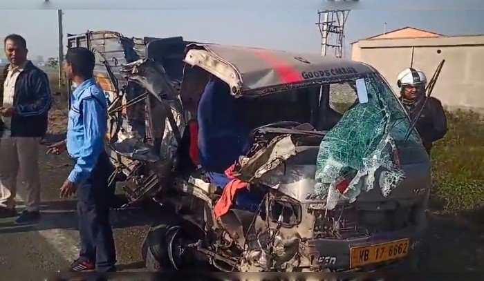 পণ্যবাহী লরির সঙ্গে ম্যাটোডোরের মুখোমুখি সংঘর্ষ, জখম চালক