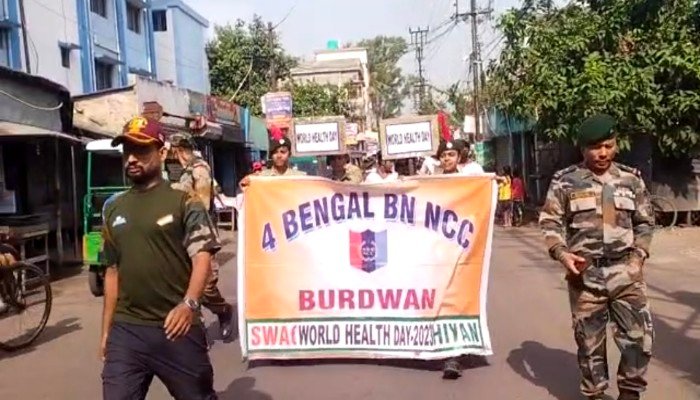 ফোকাস বেঙ্গল ডেস্ক,বর্ধমান: বিশ্ব স্বাস্থ্য দিবস উপলক্ষে বর্ধমানে ফোর্থ বেঙ্গল ব্যাটালিয়ন এনসিসির পক্ষ থেকে একটি সচেতনতামূলক শোভাযাত্রার আয়োজন করা হল শুক্রবার। ফোর্থ বেঙ্গল ব্যাটালিয়ন এর ক্যাডেট সিনিয়র আন্ডার অফিসার রাজ মন্ডল জানান, শোভাযাত্রায় উপস্থিত ছিল শহরের টাউন স্কুল, সিএমএস হাই স্কুল, মিউনিসিপাল বয়েজ হাই স্কুল, রামকৃষ্ণ বোরহাট হাই স্কুল, রামাশিস হিন্দি হাই স্কুল, নেহেরু বিদ্যামন্দির, বিবেকানন্দ মহাবিদ্যালয়, মডেল স্কুল এর মোট ২০০ জন এনসিসি বিভাগের ছাত্র ছাত্রীরা।
