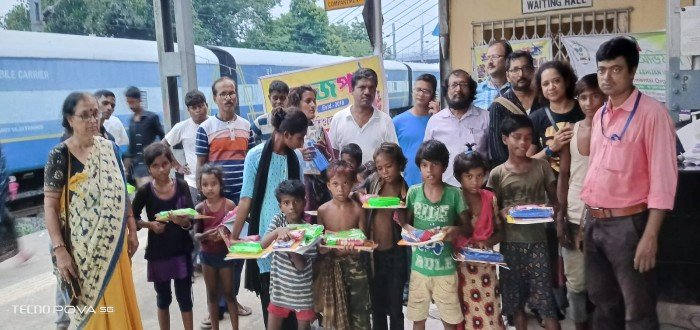 বর্ধমান রেলস্টেশনের পথ শিশুদের সঙ্গে মেয়ের জন্মদিন পালন করলেন বাবা,মা