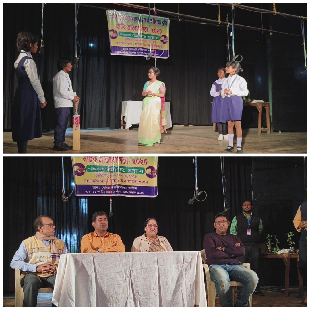 ফোকাস বেঙ্গল ডেস্ক,বর্ধমান: মিলিত প্রয়াসের পরিচালনায় আন্ত: প্রাথমিক বিদ্যালয় স্তরীয় নাটক প্রতিযোগিতা শুরু হল শুক্রবার। পরিবেশ সচেতনতা বিষয়ক এই নাটক প্রতিযোগিতায় অংশ নেয় শহরের ১০ টি প্রাথমিক বিদ্যালয়। বর্ধমানের রবীন্দ্রভবনে এই প্রতিযোগিতার উদ্বোধন করেন মহিলা থানার আইসি বনানী রায়, নাট্য ব্যক্তিত্ব ললিত কোনার, আরতি ঘোষ।