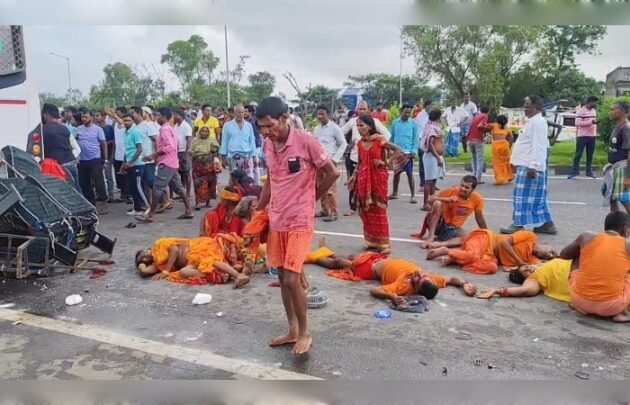 ফোকাস বেঙ্গল ডেস্ক,বর্ধমান: স্বাধীনতা দিবসের সকালেই বর্ধমানের ফাগুপুরে ১৯ নম্বর জাতীয় সড়কে ভয়াবহ বাস দুর্ঘটনায় মর্মান্তিকভাবে মৃত্যু হলো ১০ জন পুণ্যার্থীর। মৃতদের মধ্যে দুজন মহিলা ও ৮ জন পুরুষ রয়েছে। আহত আরো ২৫ জন যাত্রী। আহতদের বর্ধমান মেডিকেল কলেজ হাসপাতালে চিকিৎসা চলছে। তাদের মধ্যে তিন চারজনের শারীরিক অবস্থা আশঙ্কাজনক বলে হাসপাতাল সূত্রে জানানো হয়েছে।