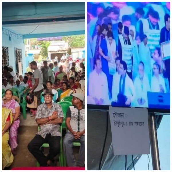 বিরোধী রাজনৈতিক দলের অনেকেরই অভিযোগ, শাসক তৃণমূলের নেতা কর্মীদের পক্ষে সবই সম্ভব। এরা কেউই কোনো নিয়ম নীতি মানেন না। এই ঘটনাই তার প্রমাণ। প্রসঙ্গত মঙ্গলবার দিল্লীতে তৃণমূলের রাজনৈতিক অনুষ্ঠানের কর্মসূচি দিনভর বৈকন্ঠপুর ১ গ্রাম পঞ্চায়েতের অফিসের নিচে এলসিডি লাগিয়ে দেখানো হয়েছে। এমনকি এলসিডির নিচে কাগজে লেখাও ছিল ‘ সৌজন্যে – বৈকুণ্ঠপুর ১ গ্রাম পঞ্চায়েত’। এলাকার তৃণমূল কর্মী থেকে সাধারণ মানুষ সবাই রীতিমত চেয়ারে বসে বড় এলসিডি পর্দায় দিল্লির আন্দোলন কর্মসূচি দেখেছেন।