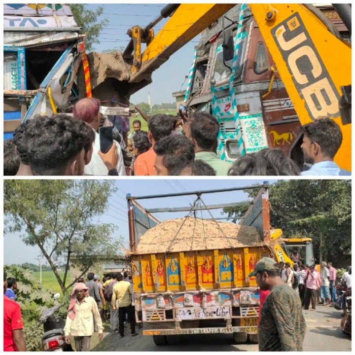 ফোকাস বেঙ্গল ডেস্ক,খন্ডঘোষ: একে তো চূড়ান্ত বেহাল অবস্থা রাস্তার, তারই মধ্যে শয়ে শয়ে যাতায়াত করছে বেপরোয়া বালির গাড়ি। ফলে একদিকে যেমন প্রাণ হাতে করে যাতায়াত করতে হচ্ছে সাধারণ মানুষ কে, অন্যদিকে দুর্ঘটনা এই রাস্তায় প্রায় প্রতিদিন লেগেই রয়েছে। শুক্রবার দুপুর ১টা নাগাদ খন্ডঘোষ থানার সালুন মোড় এলাকায় বর্ধমান – বাঁকুড়া রোডে এমনি একটি ভয়াবহ দুর্ঘটনায় অল্পের জন্য প্রাণে বেঁচে গেলেন একটি অতিরিক্ত বালি বোঝাই লরির চালক।