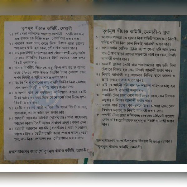 কোটি টাকার দুর্নীতি থেকে বালির খাদ ও টোল প্লাজার তোলাবাজি! মেমারিতে তৃণমূল বাঁচাও কমিটির পোস্টার ঘিরে তোলপাড়